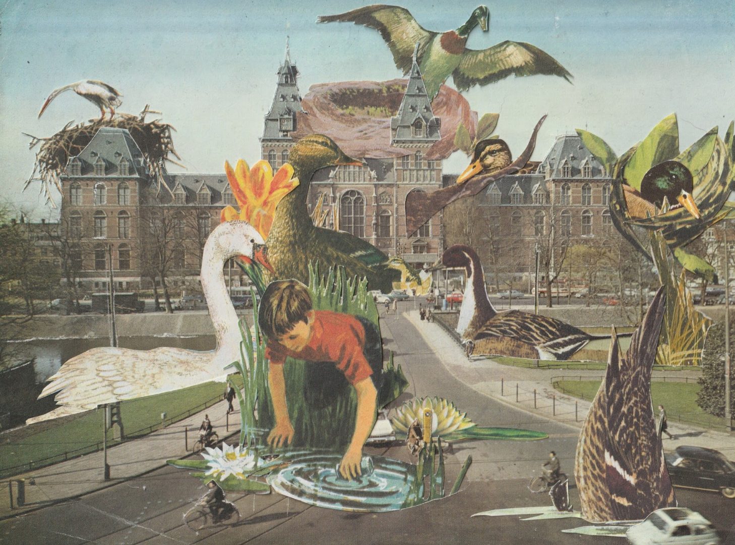collages made with only scissors, old printed magazines, postcards, and picture books brought to life through AI animation tools